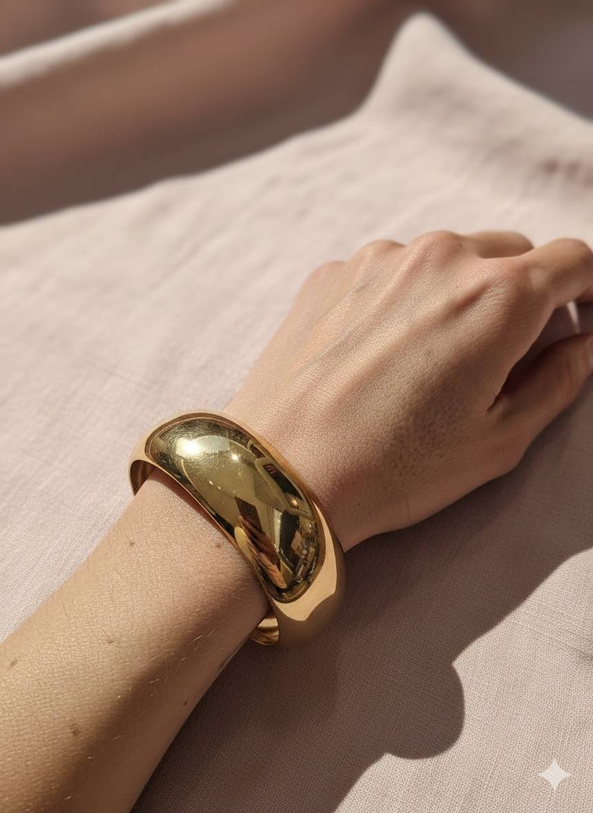 Linee pulite, forma importante, finitura super lucida: al polso fa subito “outfit pensato”, anche se sotto hai la cosa più semplice del mondo. È elegante ma easy, di quelli che metti al mattino e non togli più.