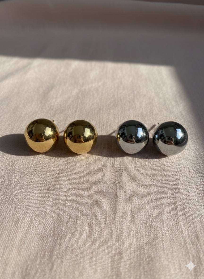 Semplici, puliti, super luminosi. Questi orecchini a bottone hanno una forma piena e arrotondata che riflette la luce e illumina subito il viso. Sono minimal, ma non invisibili: fanno la loro figura senza risultare troppo.