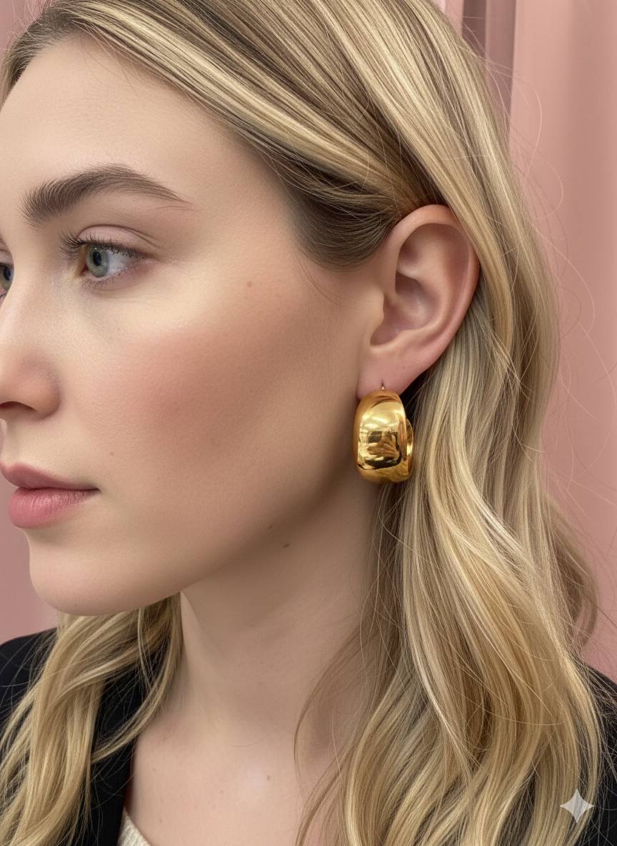 Sono quegli orecchini che non hanno bisogno di presentazioni: semplici nella forma, ma super d’impatto. Il volume è quello giusto, la finitura lucida cattura la luce e illumina subito il viso. Eleganti, femminili, ma zero “da cerimonia forzata”: li metti e sei subito a posto.