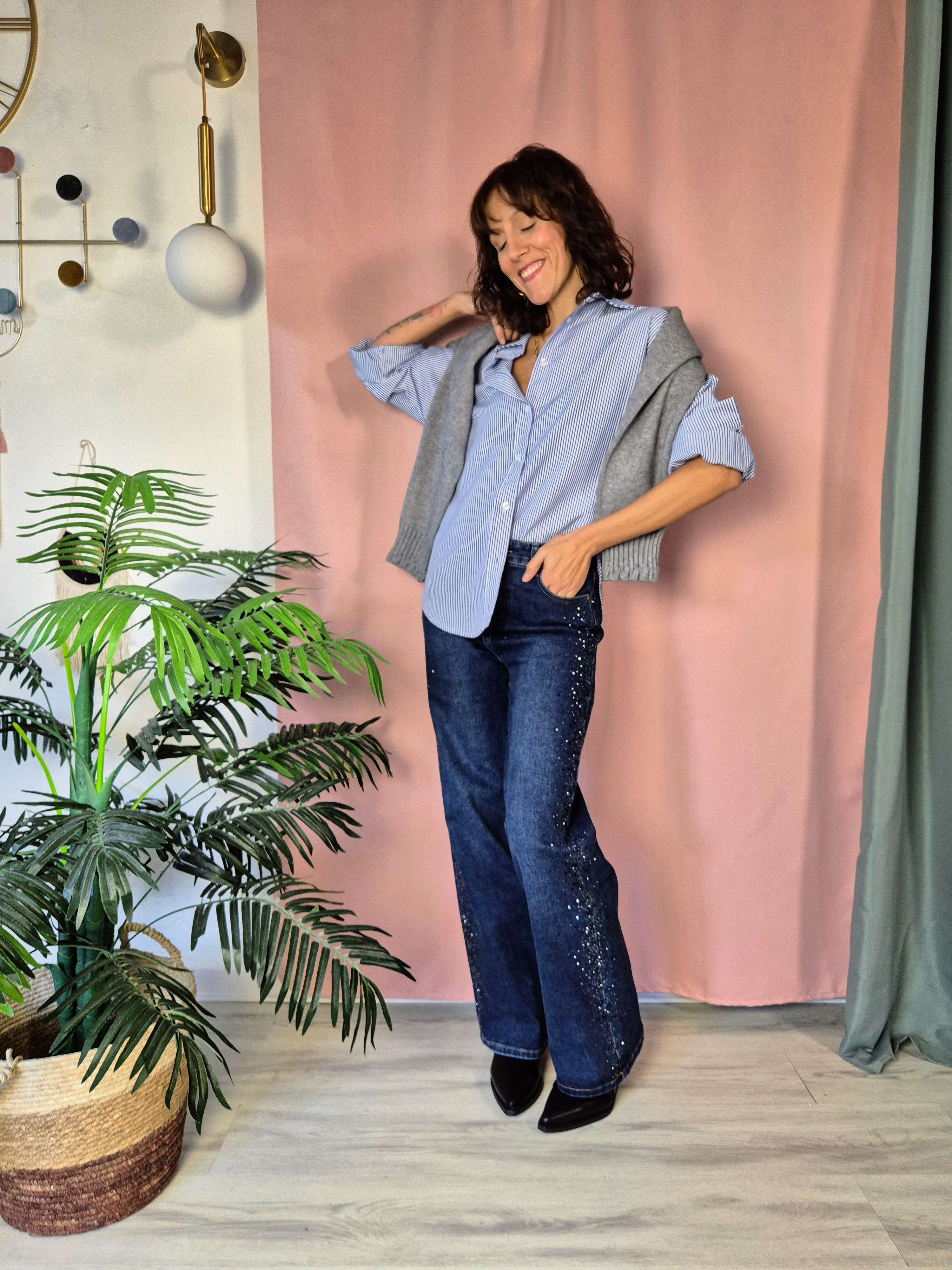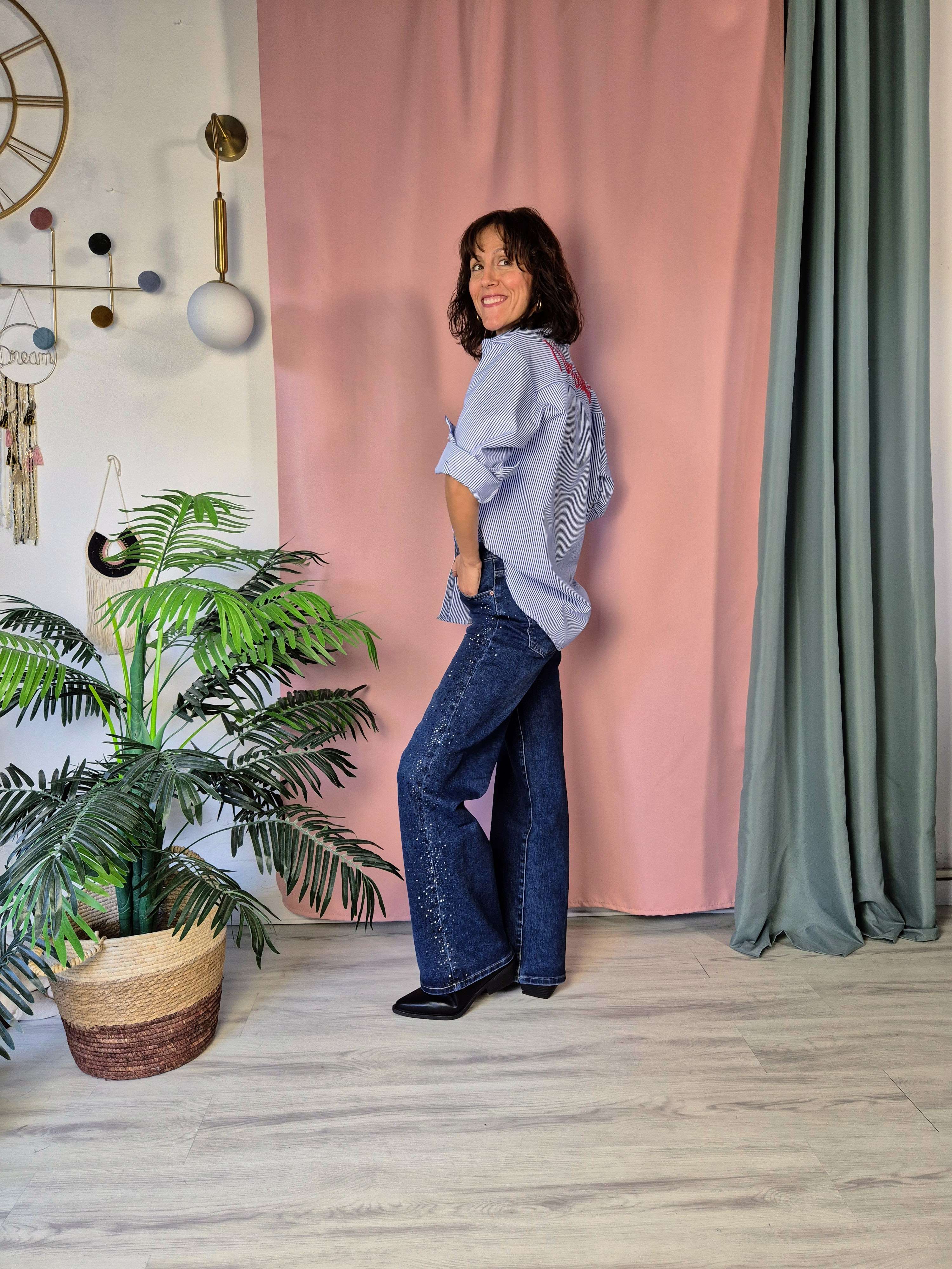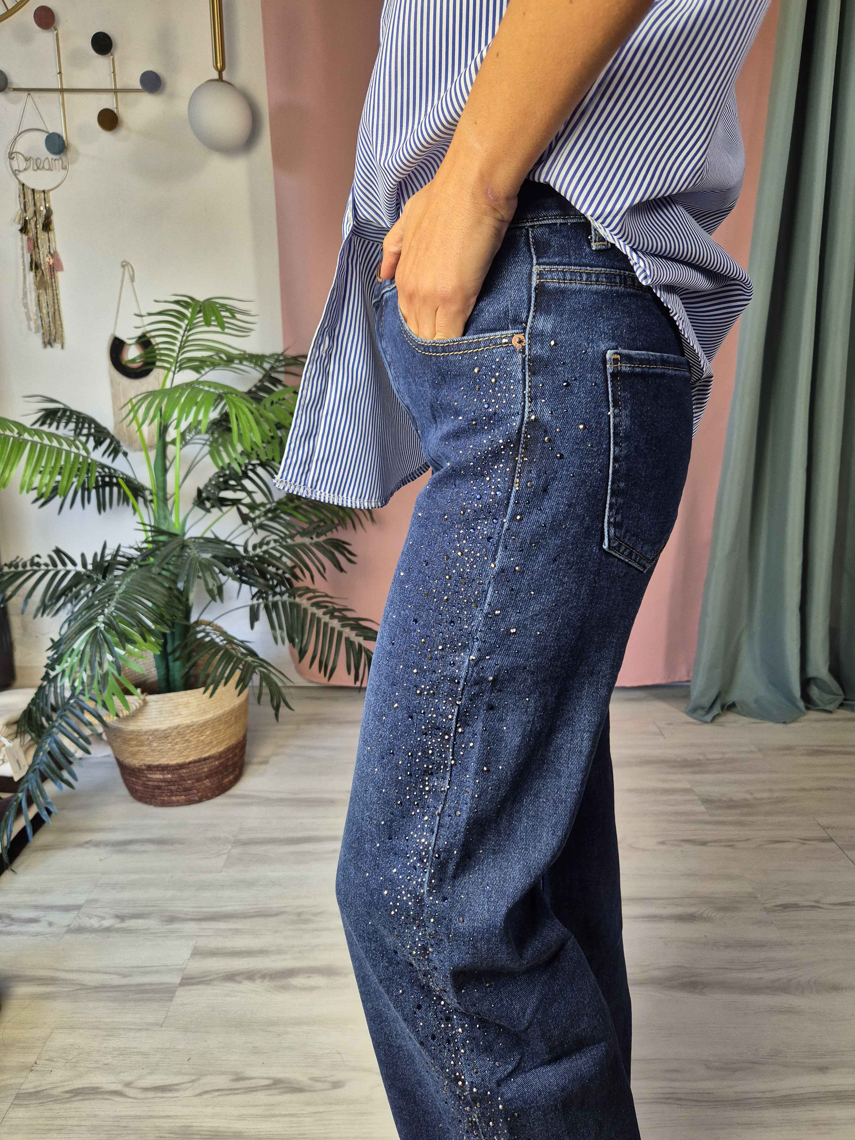 Il jeans Rebel Wide Curvy è pensato per chi ama comfort e carattere nello stesso capo. La linea leggermente più ampia garantisce una vestibilità comoda e perfetta anche per le fisicità curvy, mentre la cascata di brillantini laterali lungo la gamba dona luce e un tocco glam irresistibile.