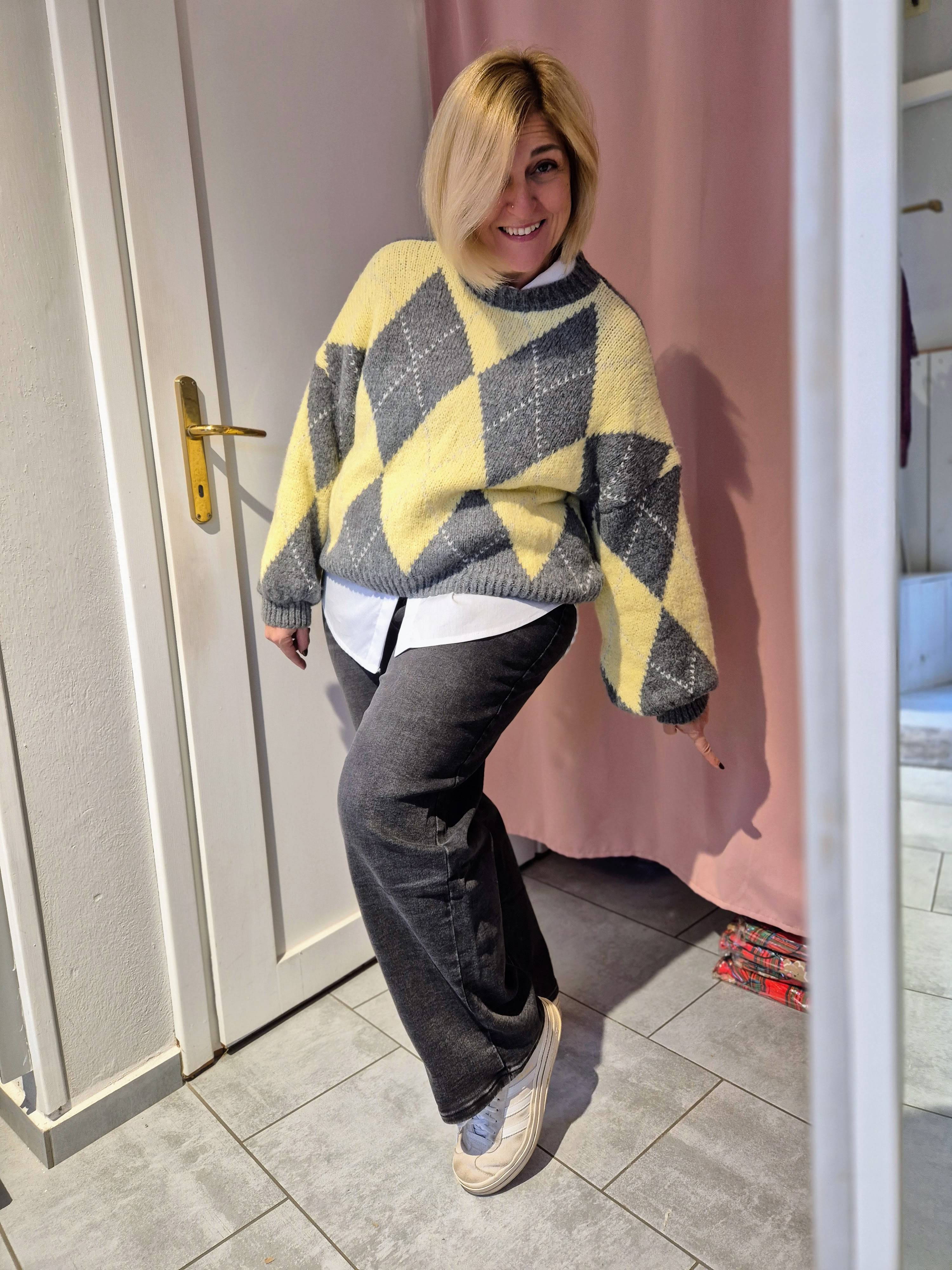 Con un maglioncino colorato e stivaletti per un look quotidiano e confortevole.