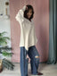 Realizzato in un filato leggero e fluido, perfetto per la mezza stagione, si distingue per il suo taglio asimmetrico e la vestibilità over, che lo rendono attuale e facilissimo da indossare.