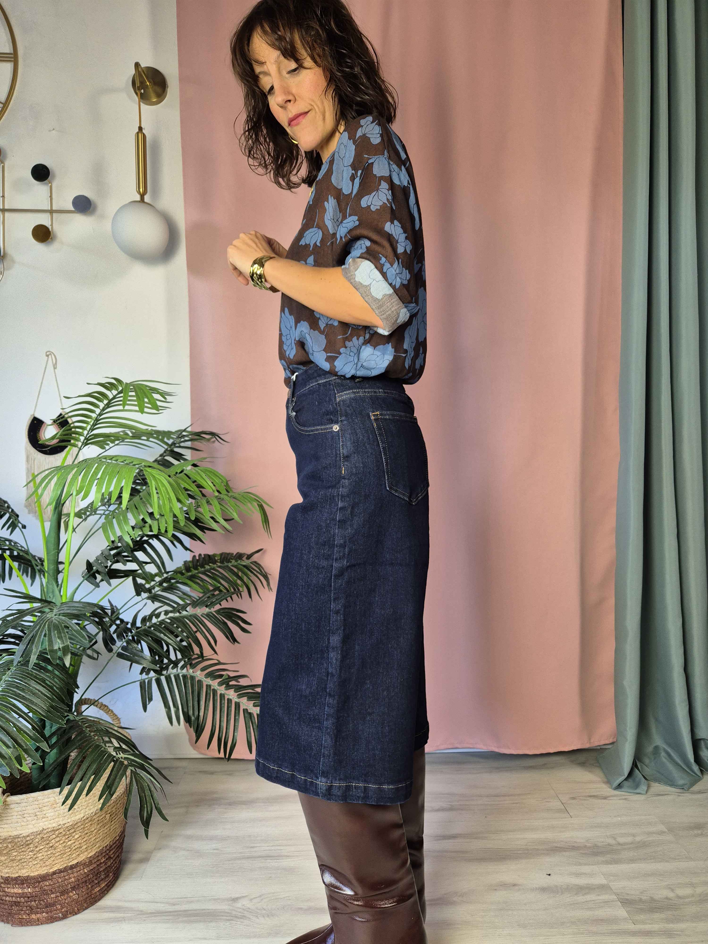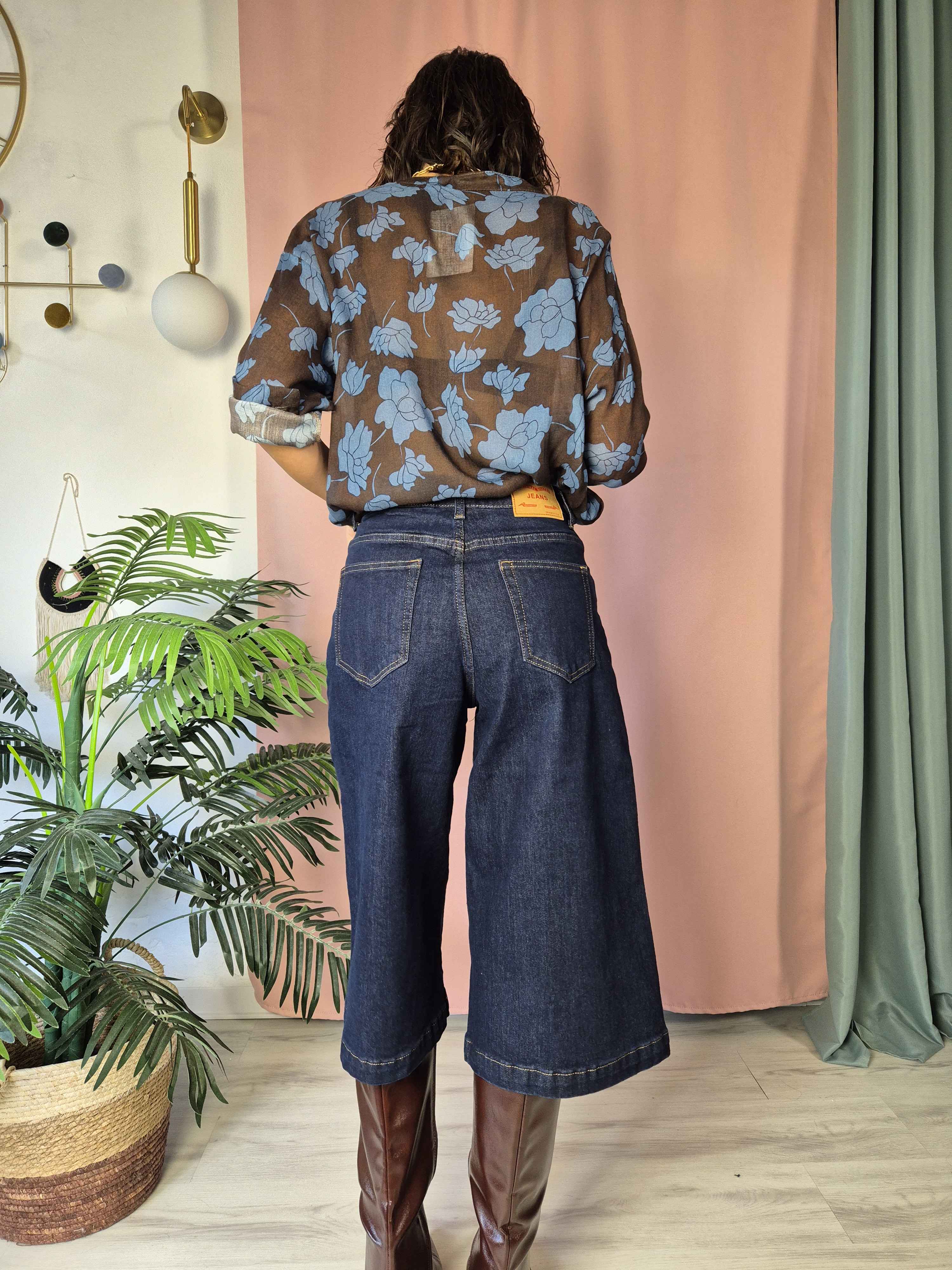 Un modello che unisce la freschezza del bermuda alla linea moderna del wide leg: con gamba ampia e vita alta, è la scelta perfetta per chi cerca uno stile comodo ma di carattere. Il denim blu scuro tinta unita lo rende pulito ed elegante, facile da abbinare in ogni occasione.