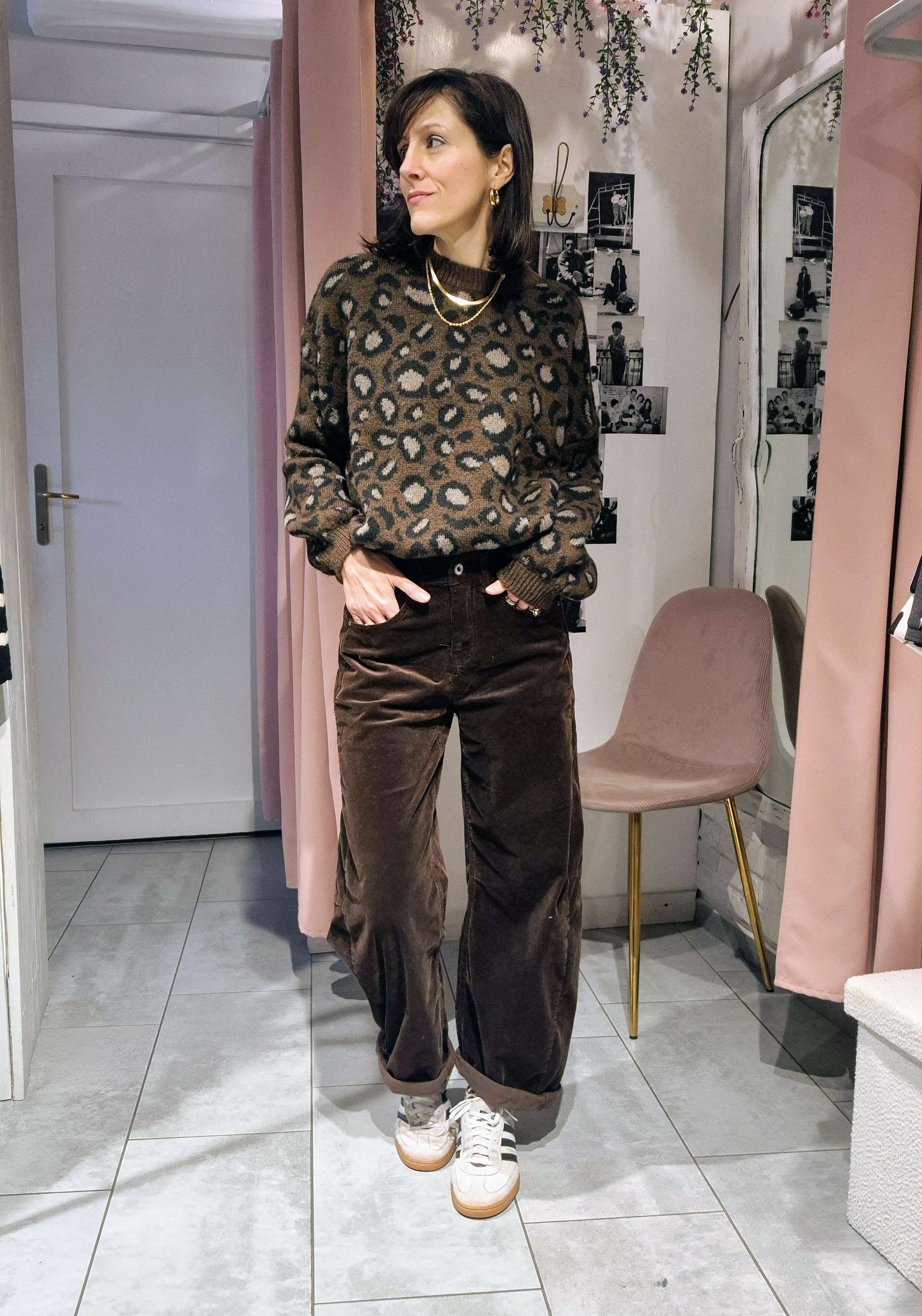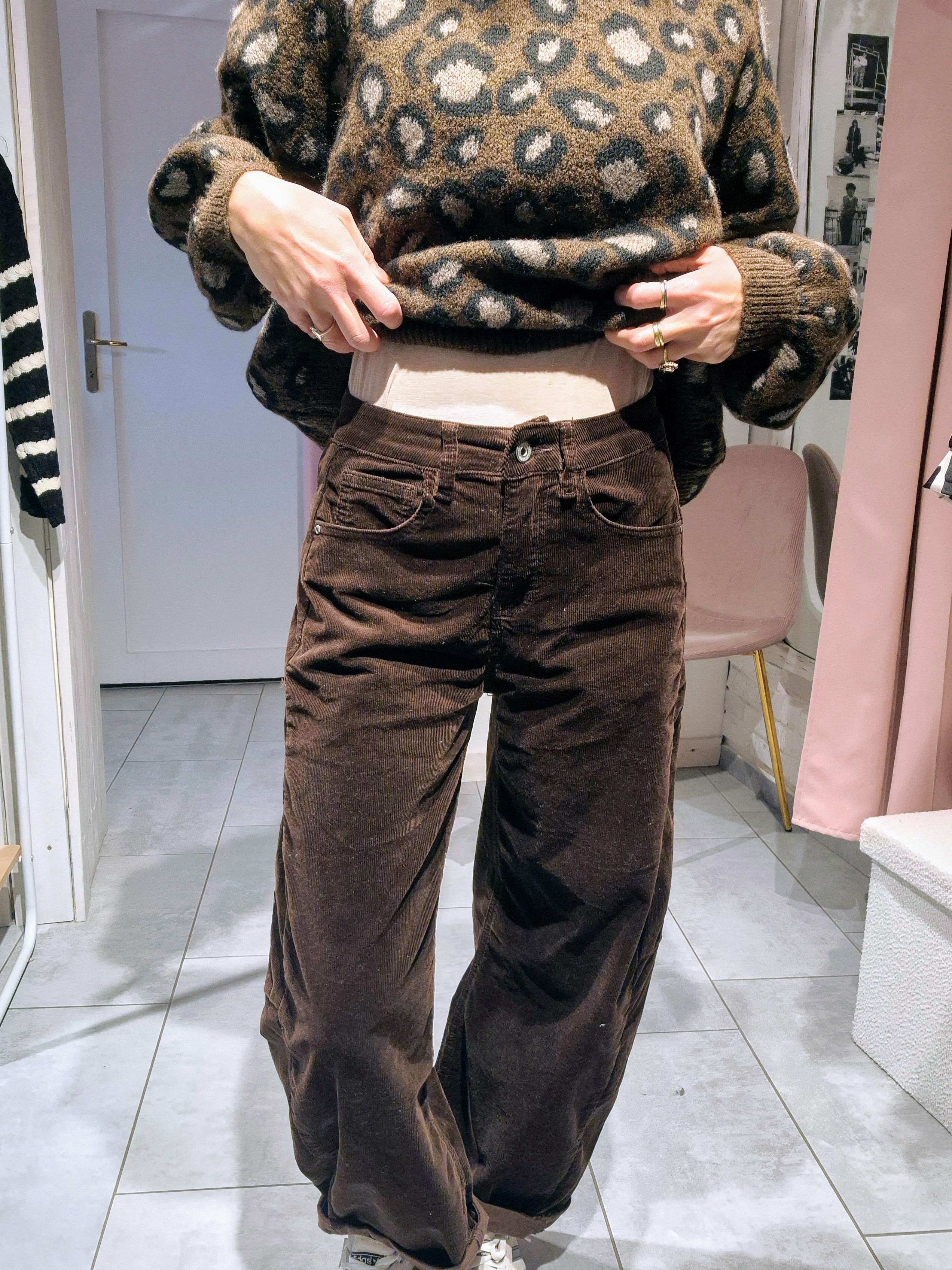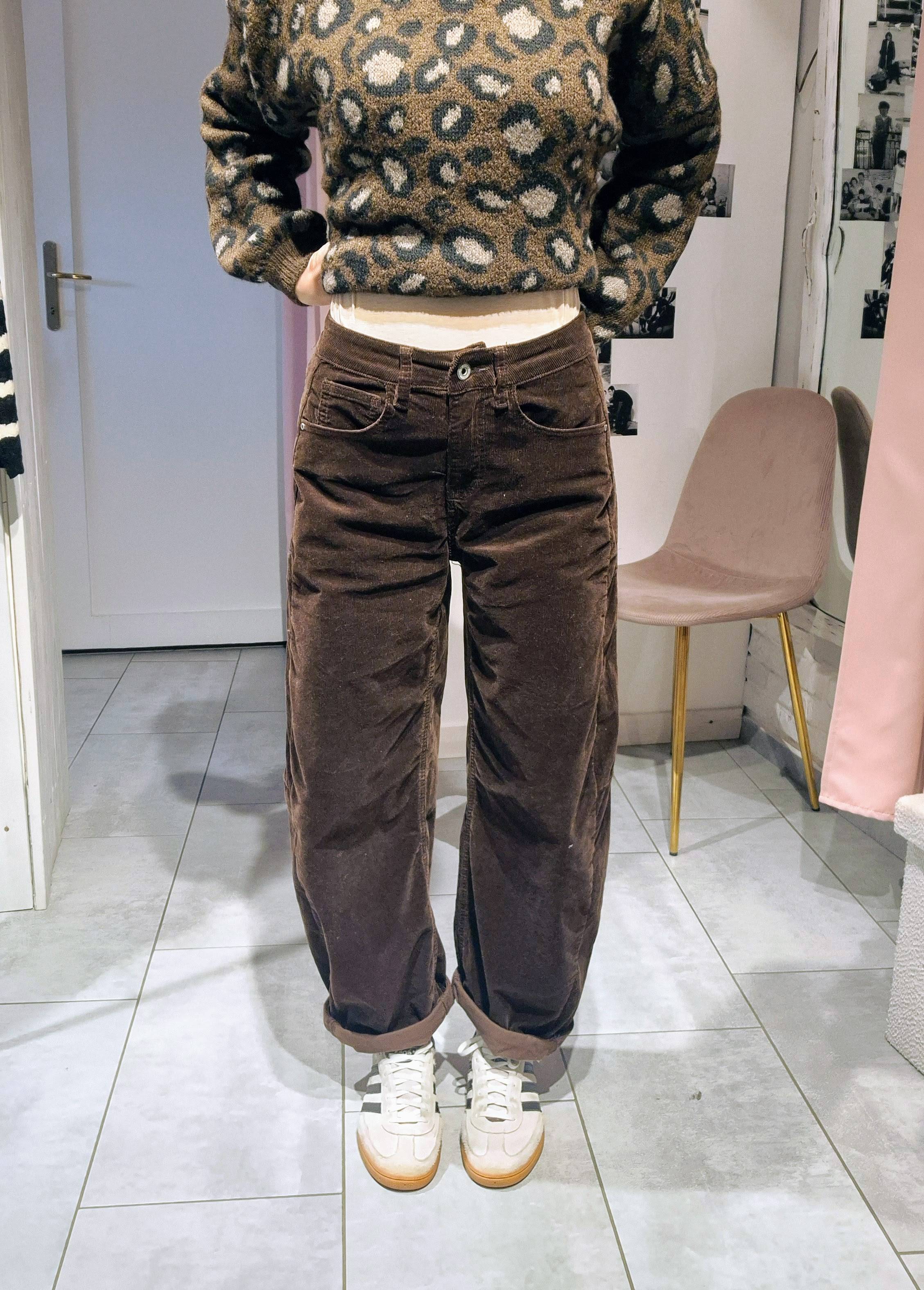 Il colore marrone scuro lo rende perfetto per la stagione, elegante e pieno di personalità — da indossare con maglioni morbidi, camicie over o blazer per look sempre curati e moderni.