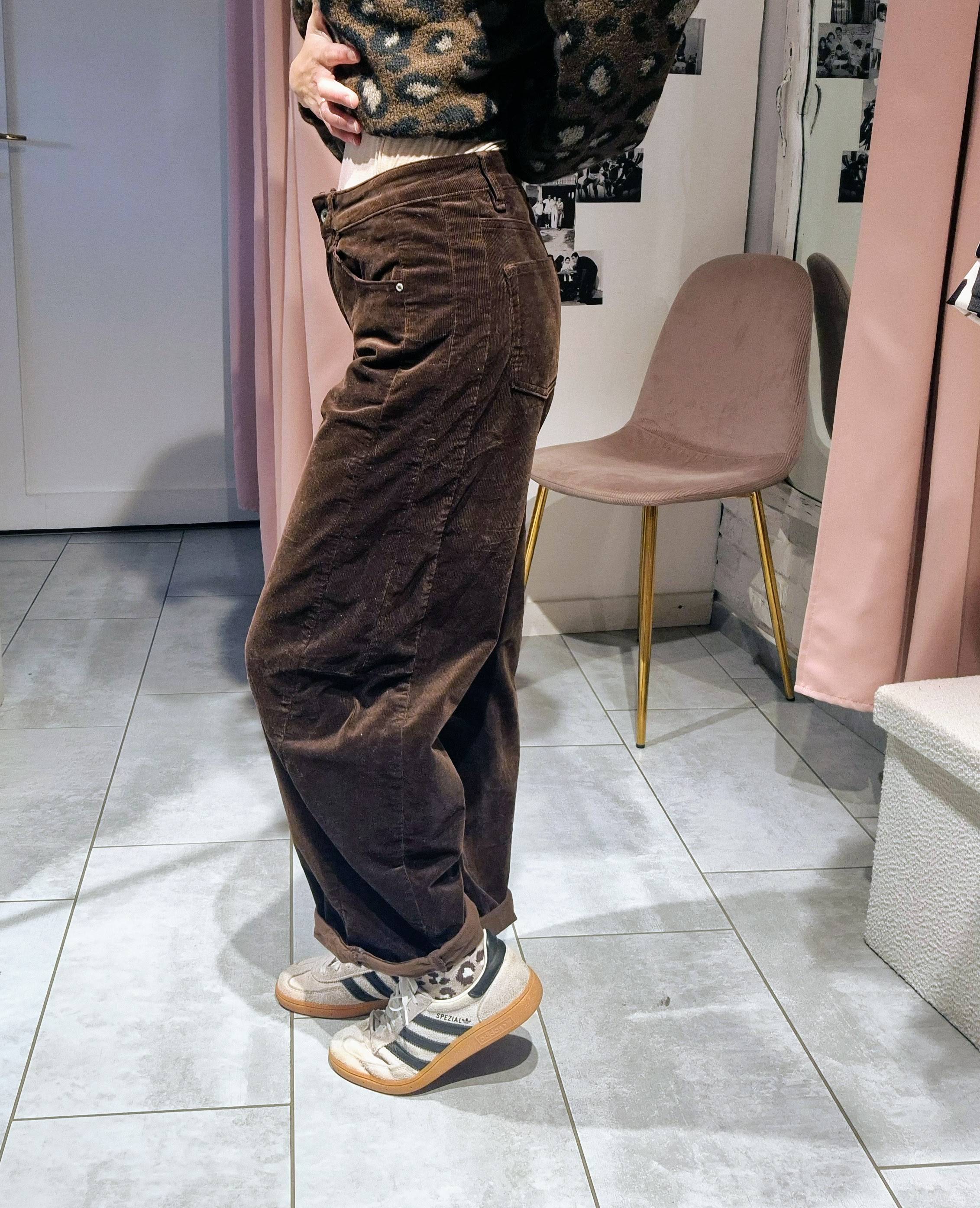 Il Pantalone Barrel Velvet reinventa il classico modello curved barrel in una versione in velluto morbido e avvolgente. La texture calda e vellutata aggiunge un tocco ricercato a ogni outfit, mentre la linea arrotondata della gamba slancia e dona carattere senza rinunciare alla comodità. Un capo versatile e super trendy, ideale per chi vuole un pantalone particolare ma facile da abbinare.