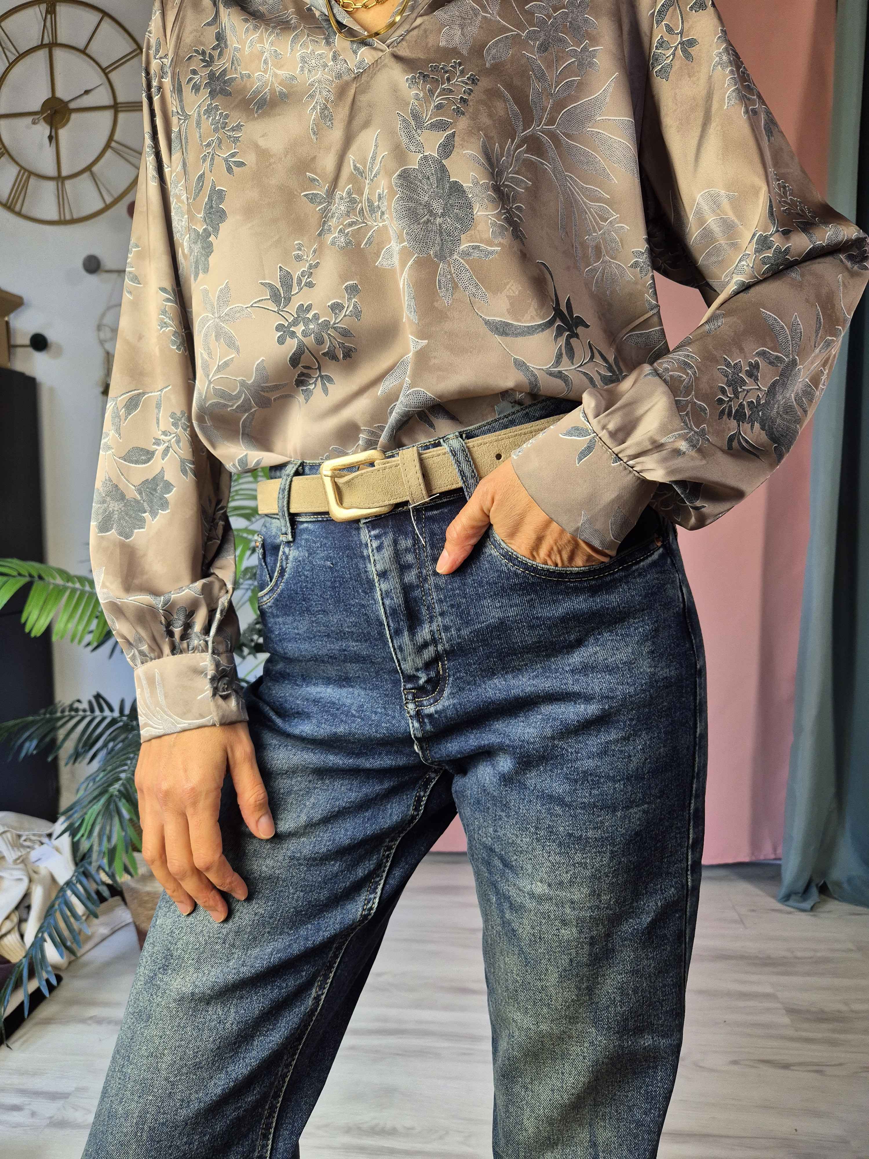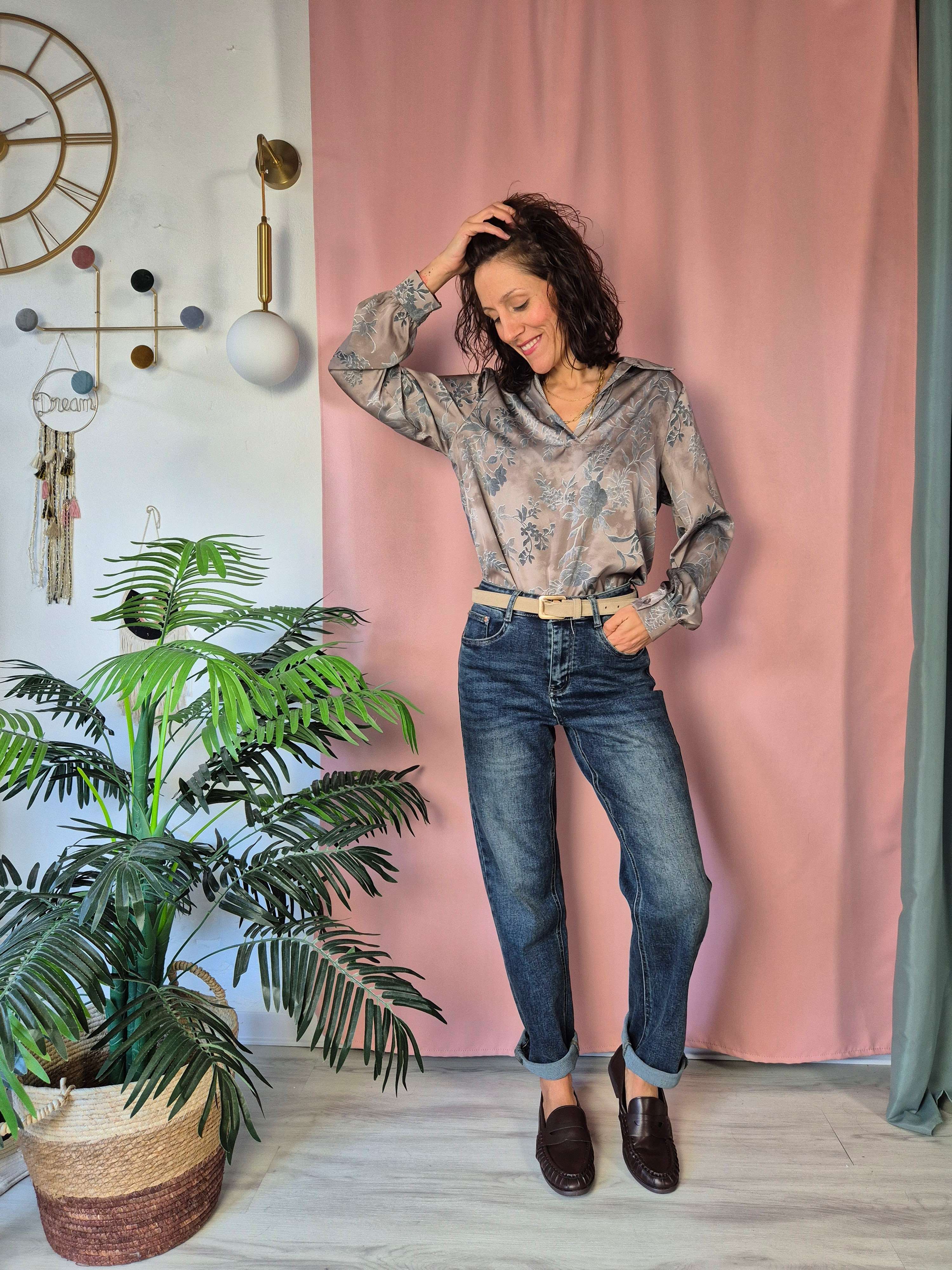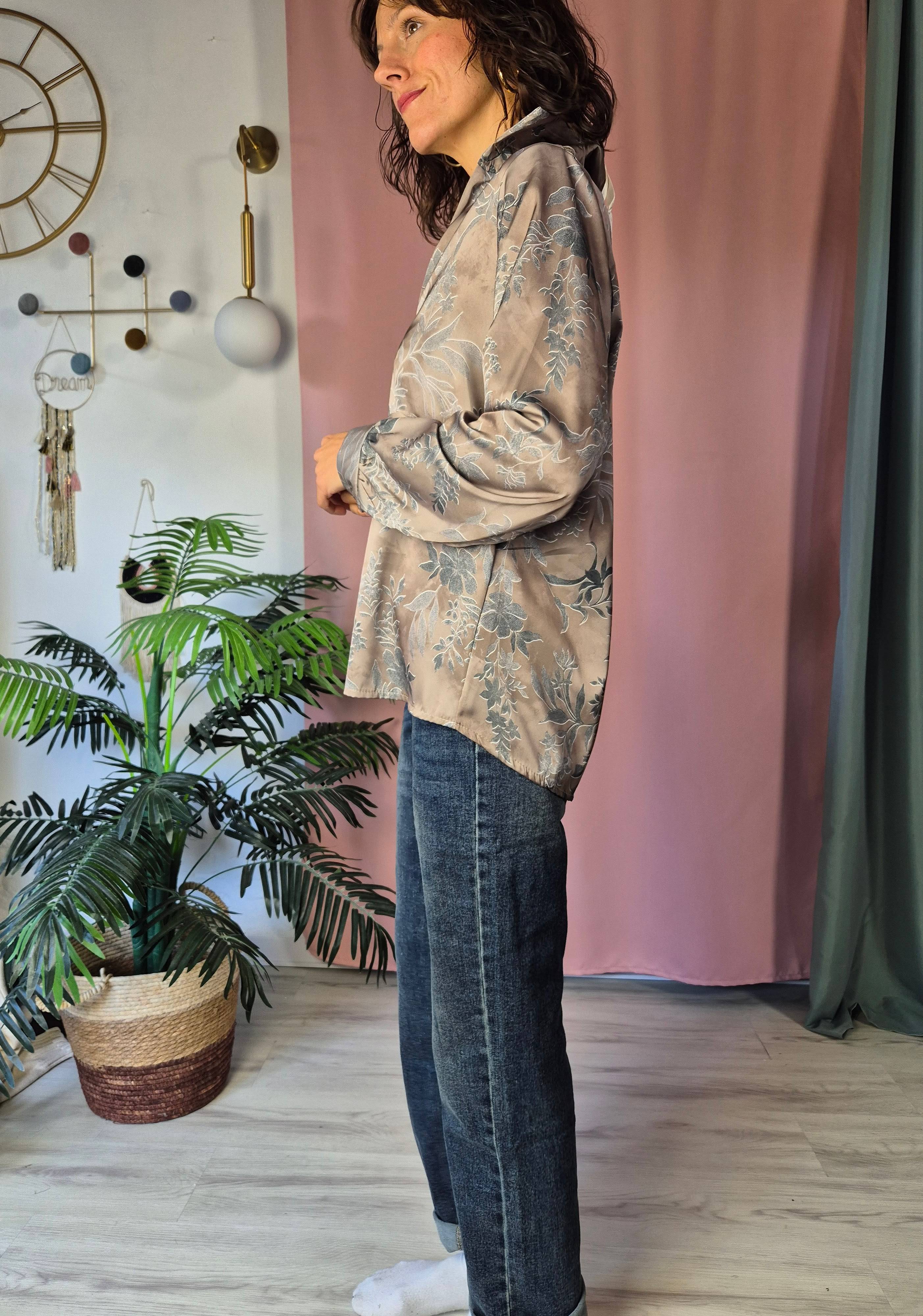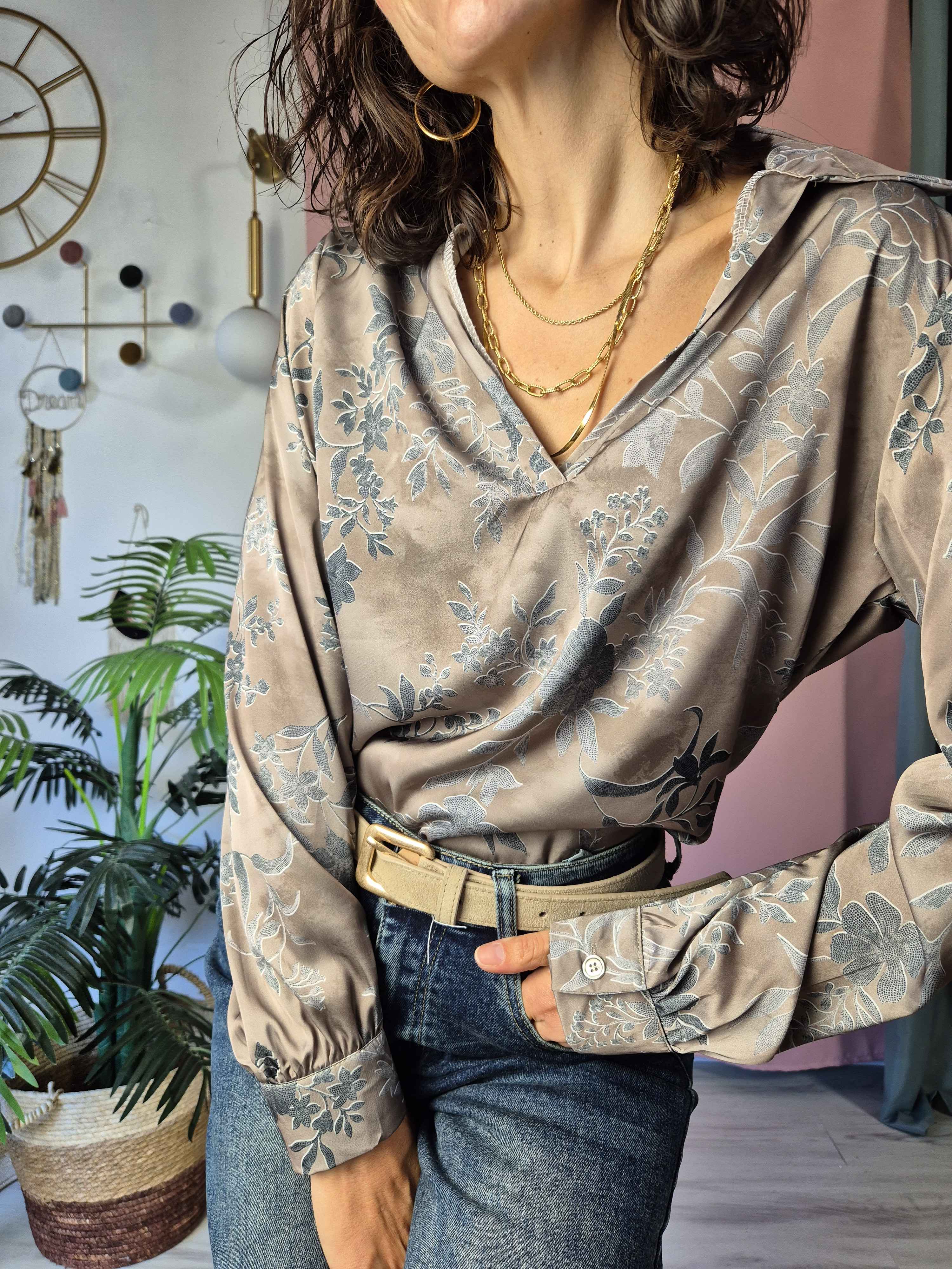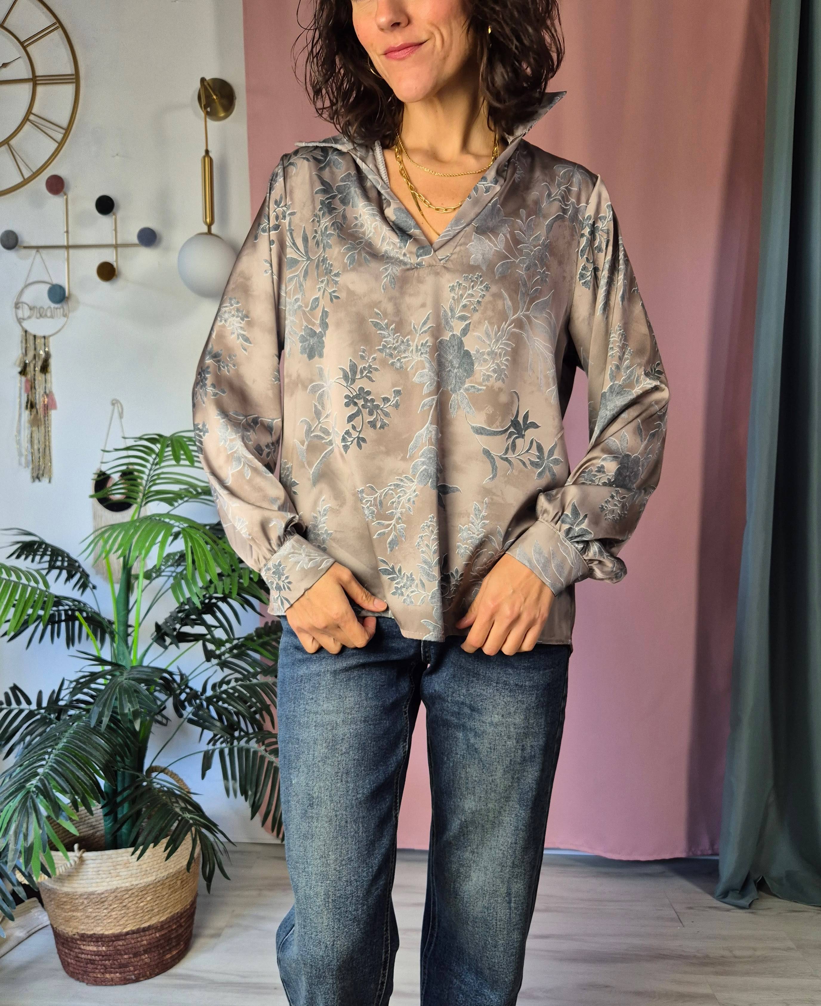Se ami i capi che sanno raccontare storie di bellezza raffinata, Iris è la blusa che completa la tua ricerca di eleganza. Il delicato motivo floreale sulle tonalità neutre crea un effetto pittorico che incanta ad ogni sguardo. La scollatura a V valorizza il décolleté con grazia, mentre il collo a camicia aggiunge un tocco di classica raffinatezza. La vestibilità generosa abbraccia diverse silhouette, garantendo comfort senza mai rinunciare allo stile.