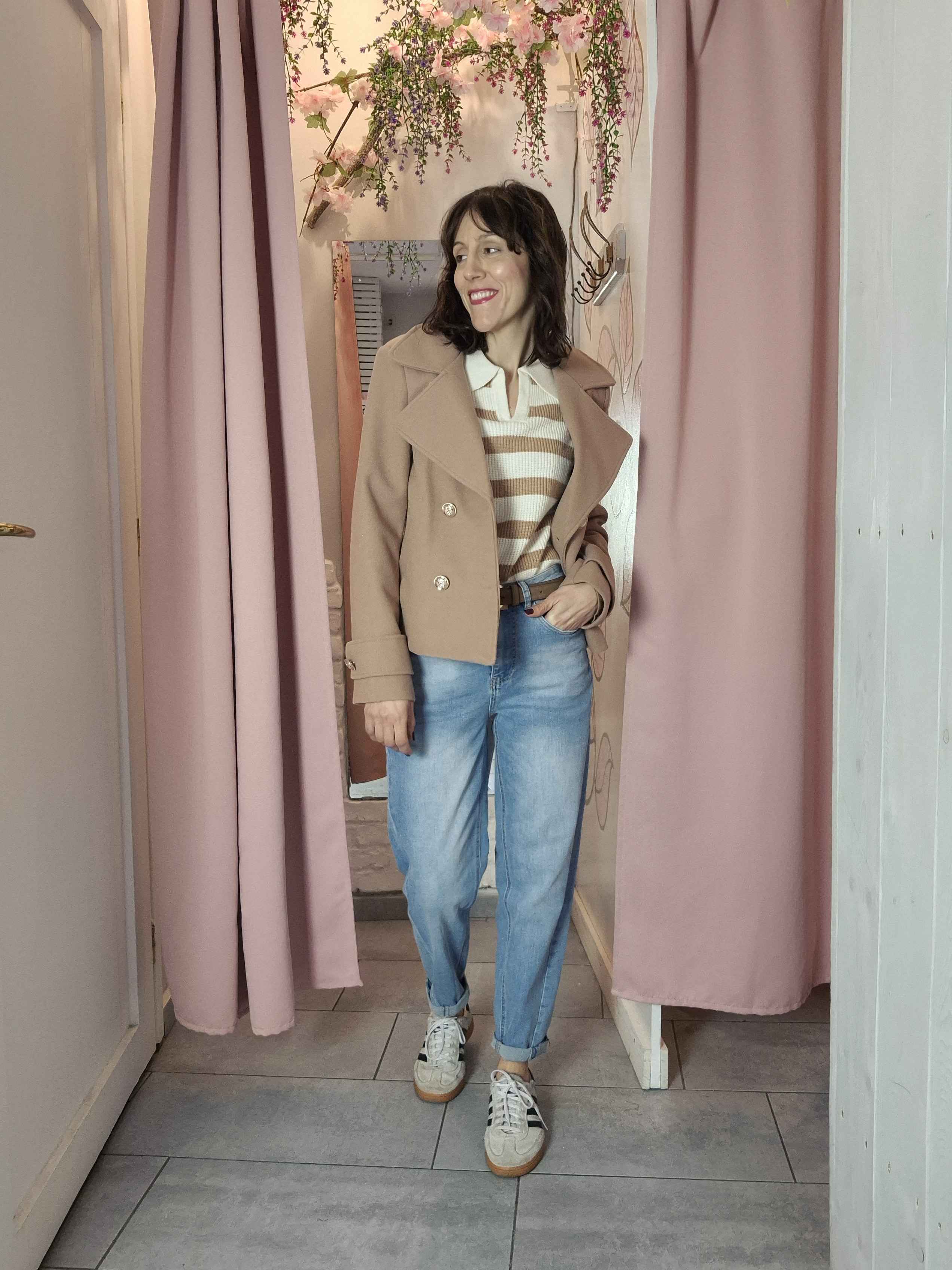 Con pantaloni sartoriali e stivaletti per un look elegante da città.