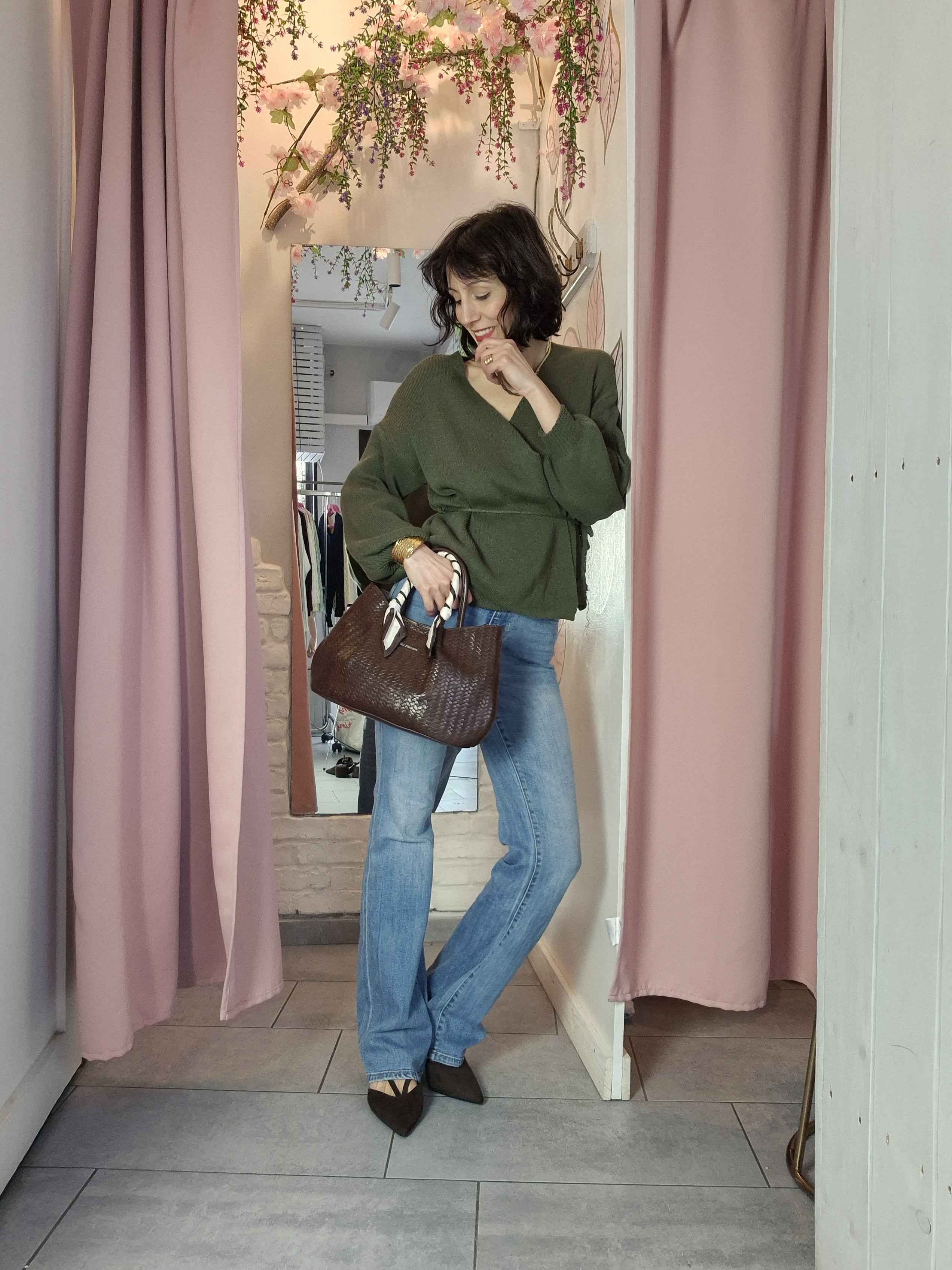 Con un jeans Flare a vita alta per un look femminile e casual.
