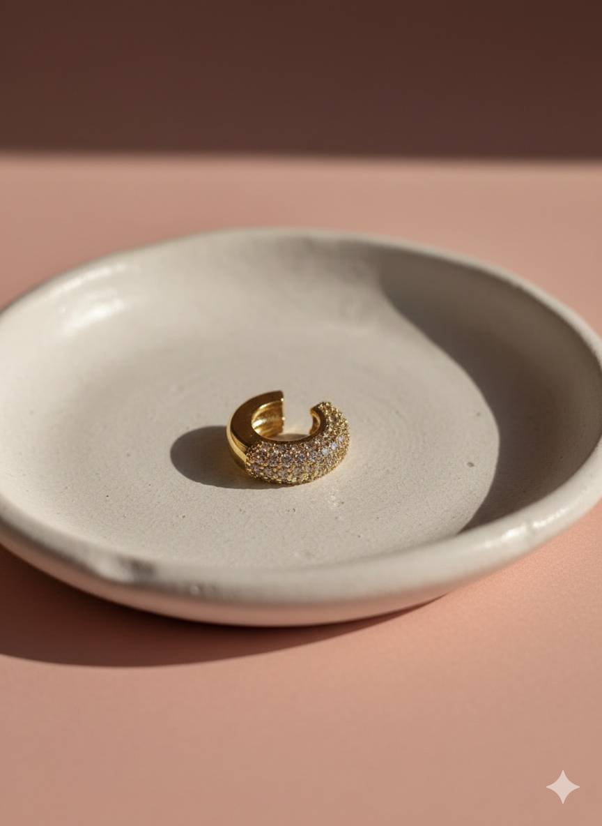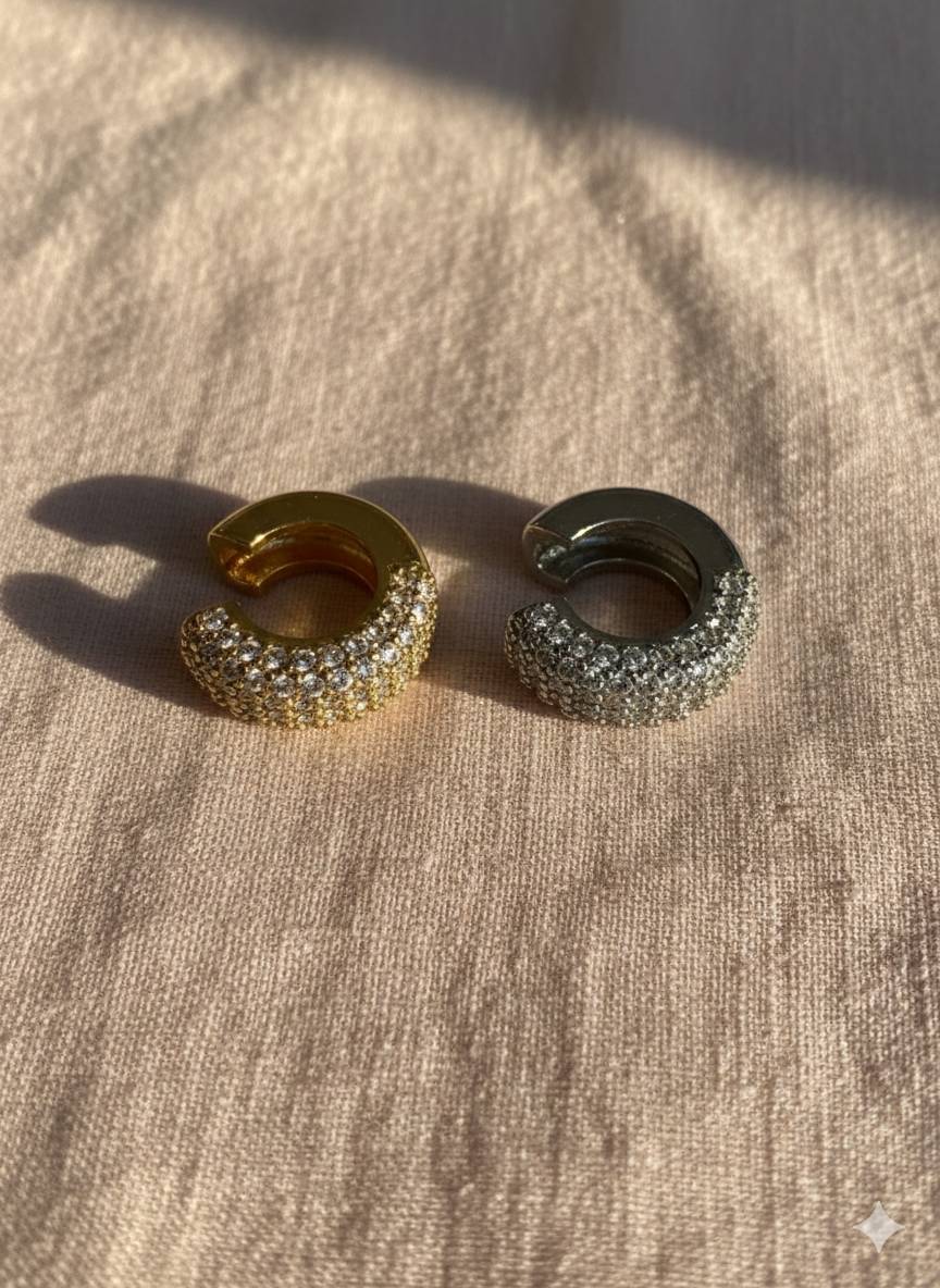 È un ear cuff delicato ma d’effetto: la fila di micro strass cattura la luce e illumina subito l’orecchio. Si indossa senza foro, si infila in un attimo ed è comodissimo, perfetto anche se non sei abituata agli accessori importanti.