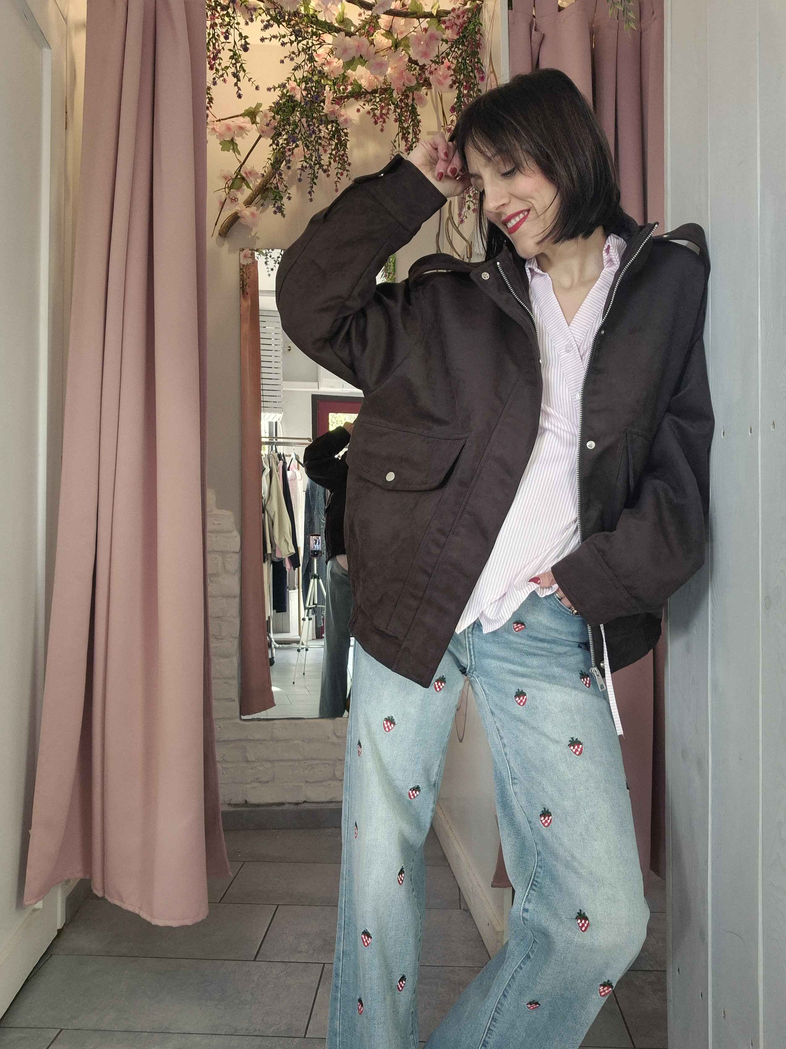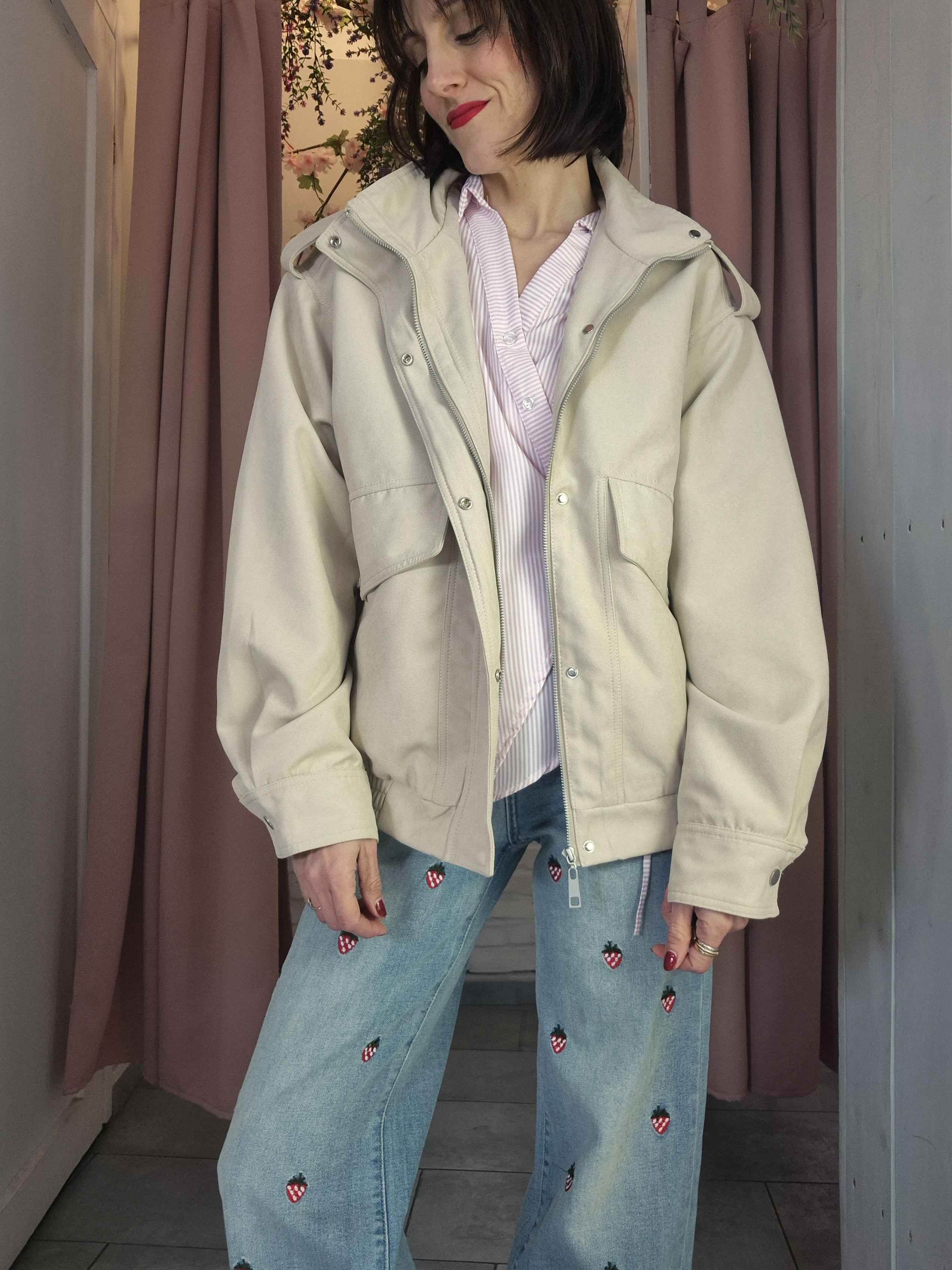 I dettagli lo rendono super attuale: tasche frontali, linea pulita e chiusura che richiama uno stile un po’ utility, perfetto per chi ama un look curato ma senza sforzo.