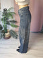 Le micro borchie applicate su tutta la gamba, sia sul fronte che sul retro, aggiungono un tocco luminoso e grintoso che cattura subito lo sguardo.