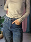 Il suo taglio curved barrel, più morbido sulla coscia e leggermente affusolato verso la caviglia, crea una linea moderna e confortevole, perfetta per chi ama la moda con personalità.