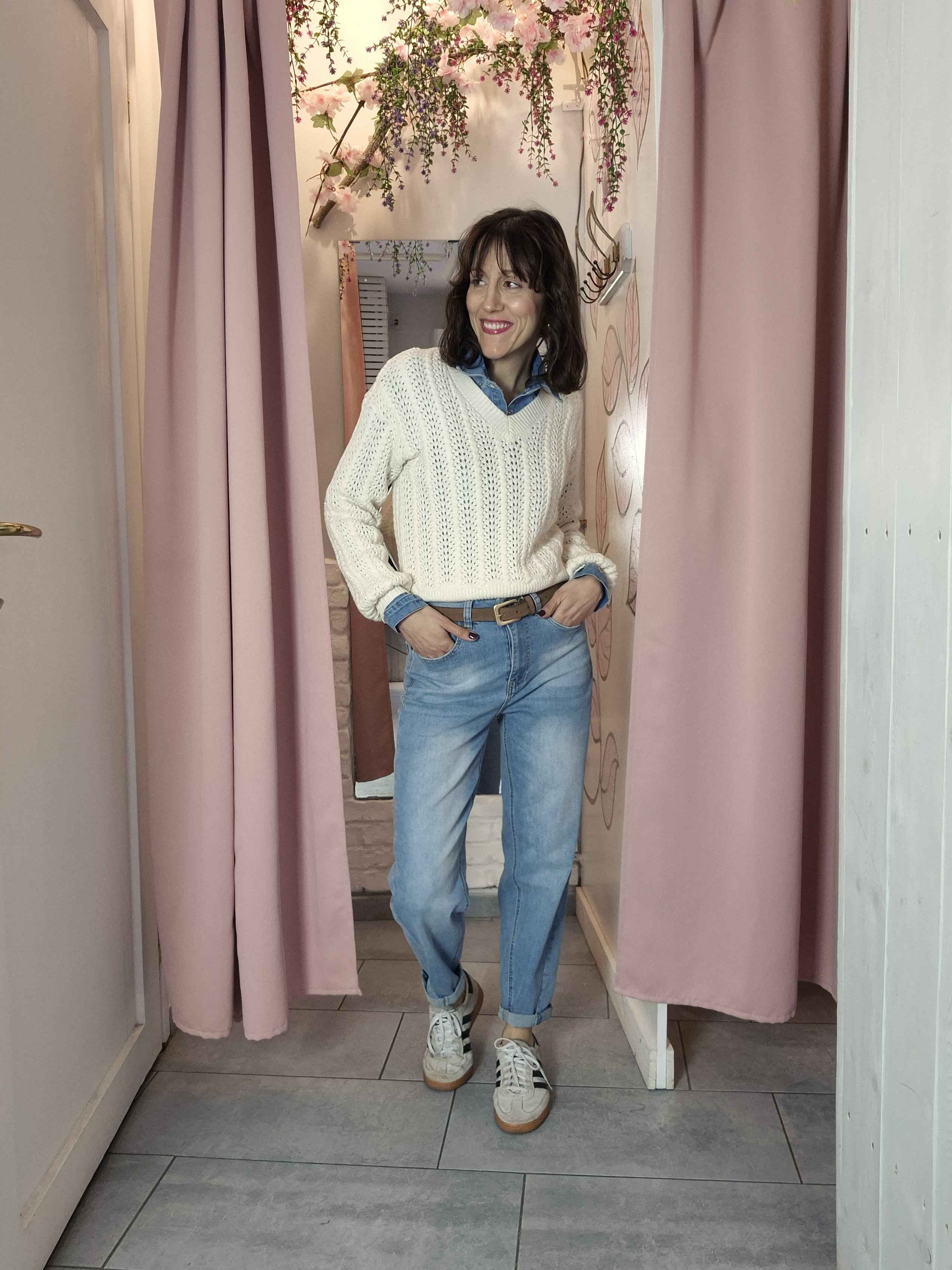 Disponibile in vari colori, è uno di quei maglioncini che risolvono l’outfit in un attimo.