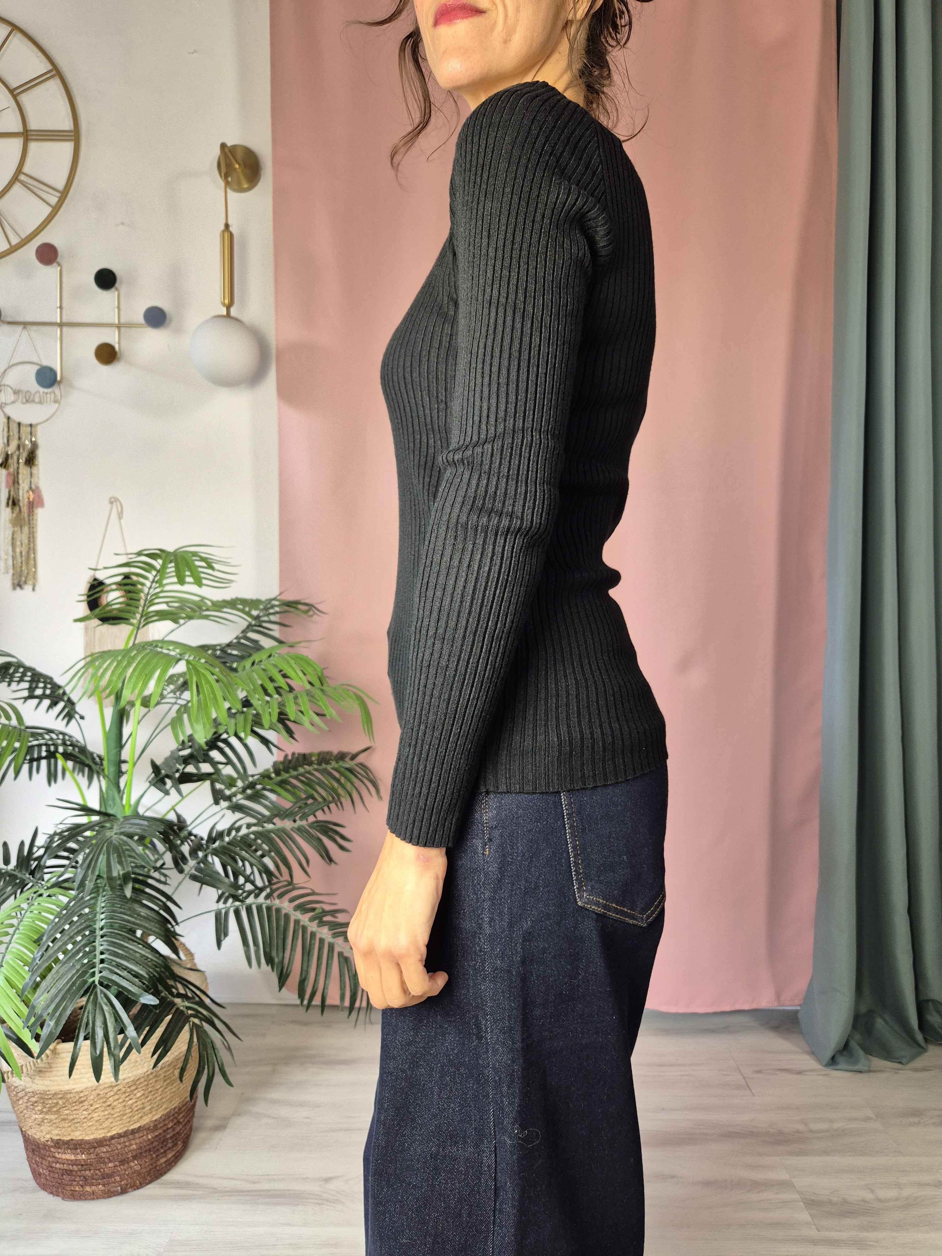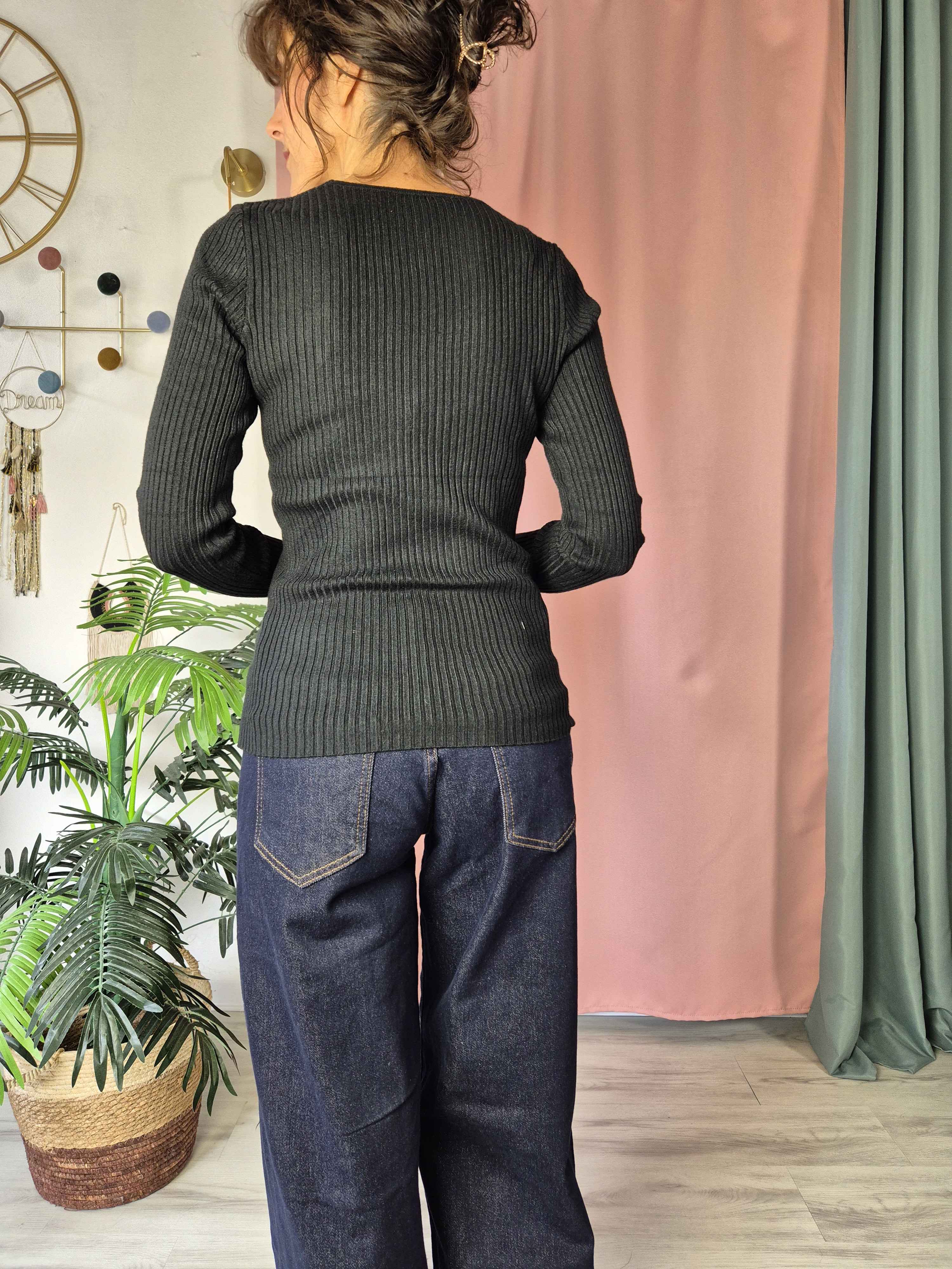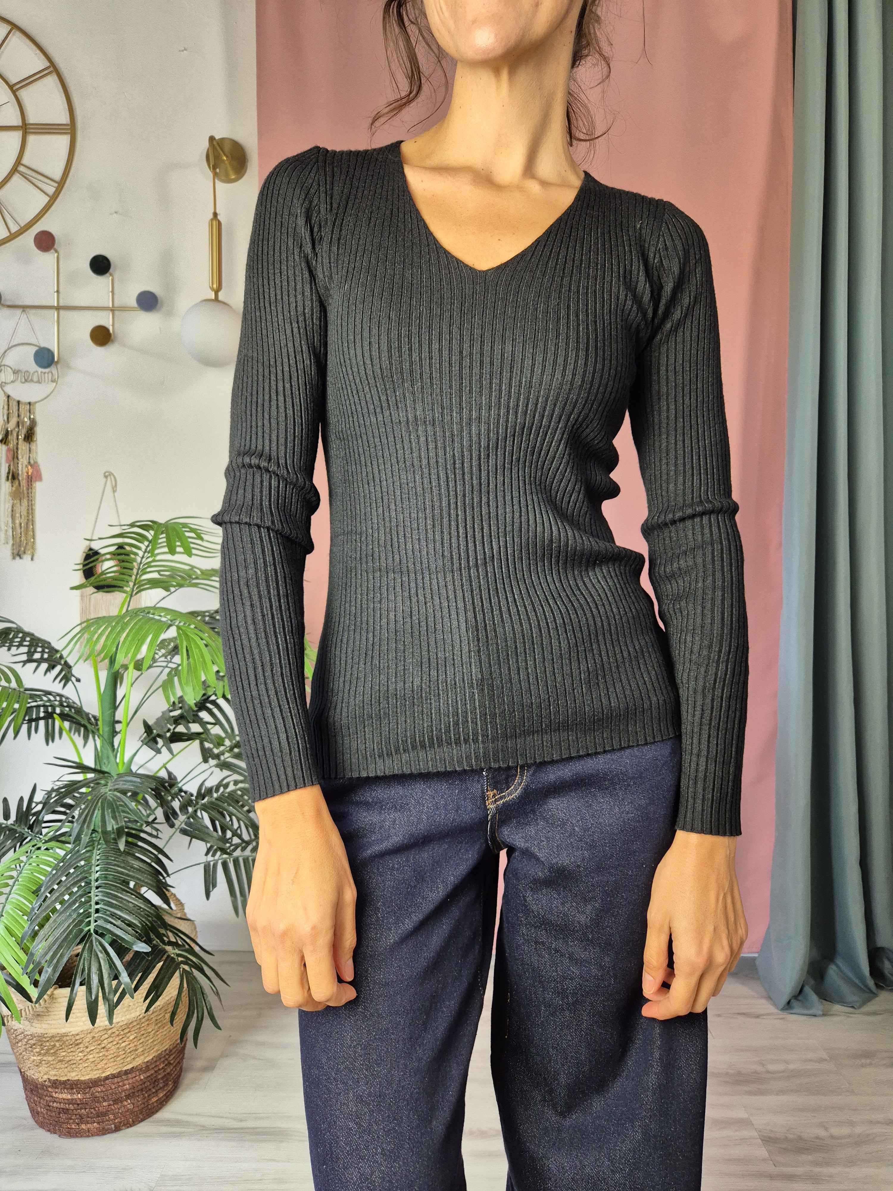 Un maglioncino che unisce semplicità ed eleganza, perfetto per accompagnarti nelle giornate di tutti i giorni ma anche per le occasioni più curate. La lavorazione a costine abbraccia la silhouette senza costringerla, mentre lo scollo a V slancia e dona un tocco di femminilità naturale. Un capo versatile e raffinato che non può mancare nel guardaroba.