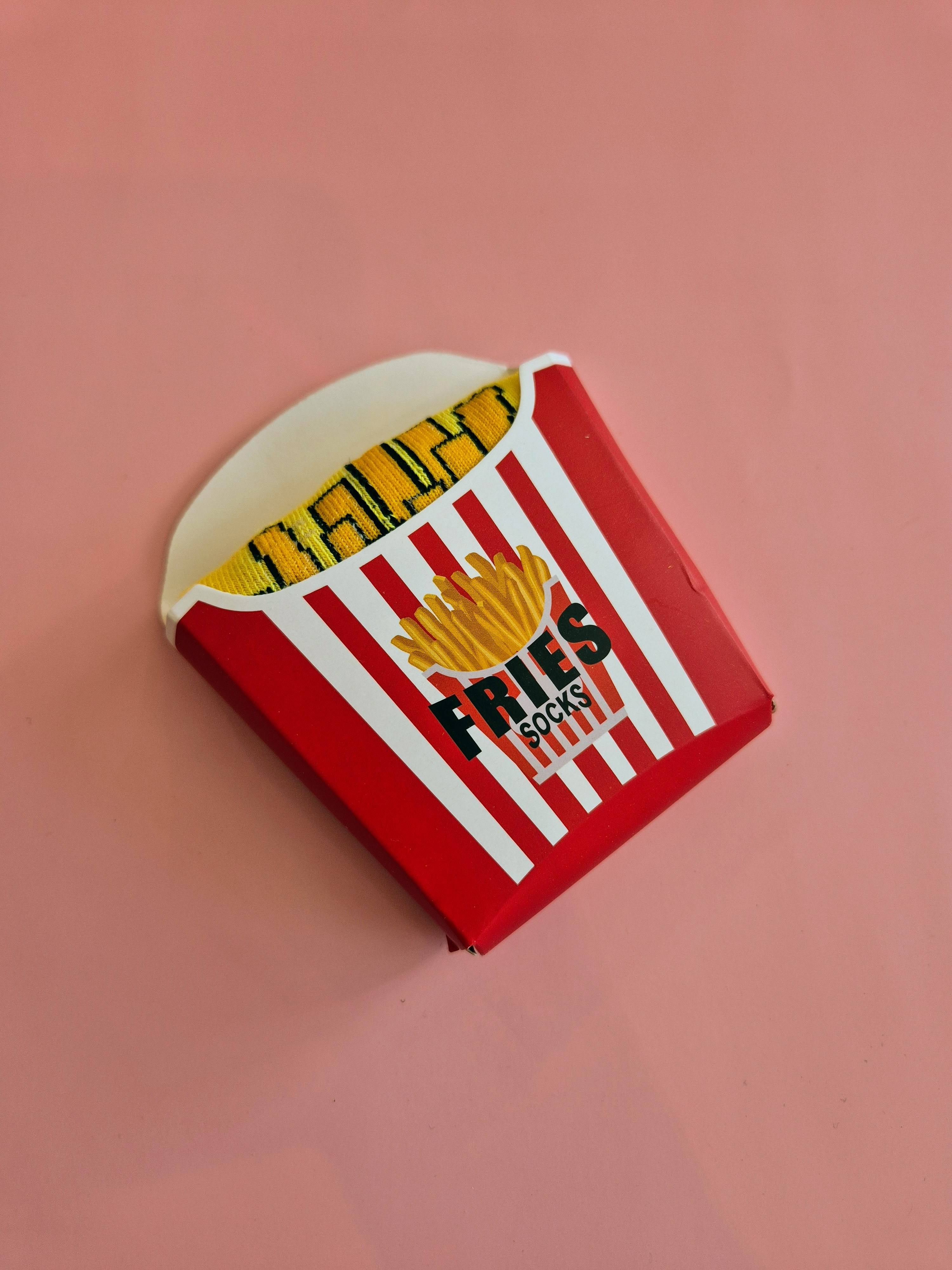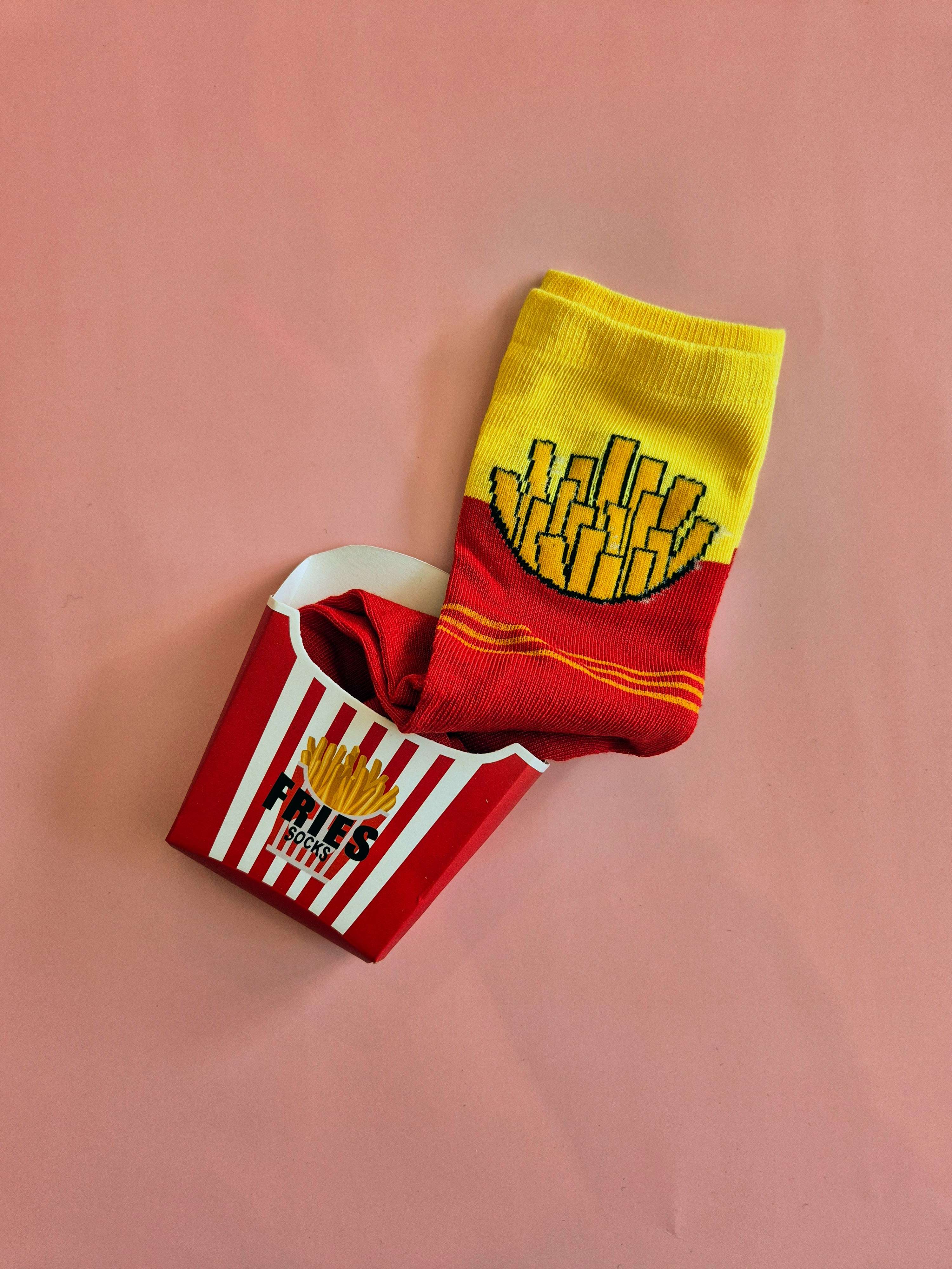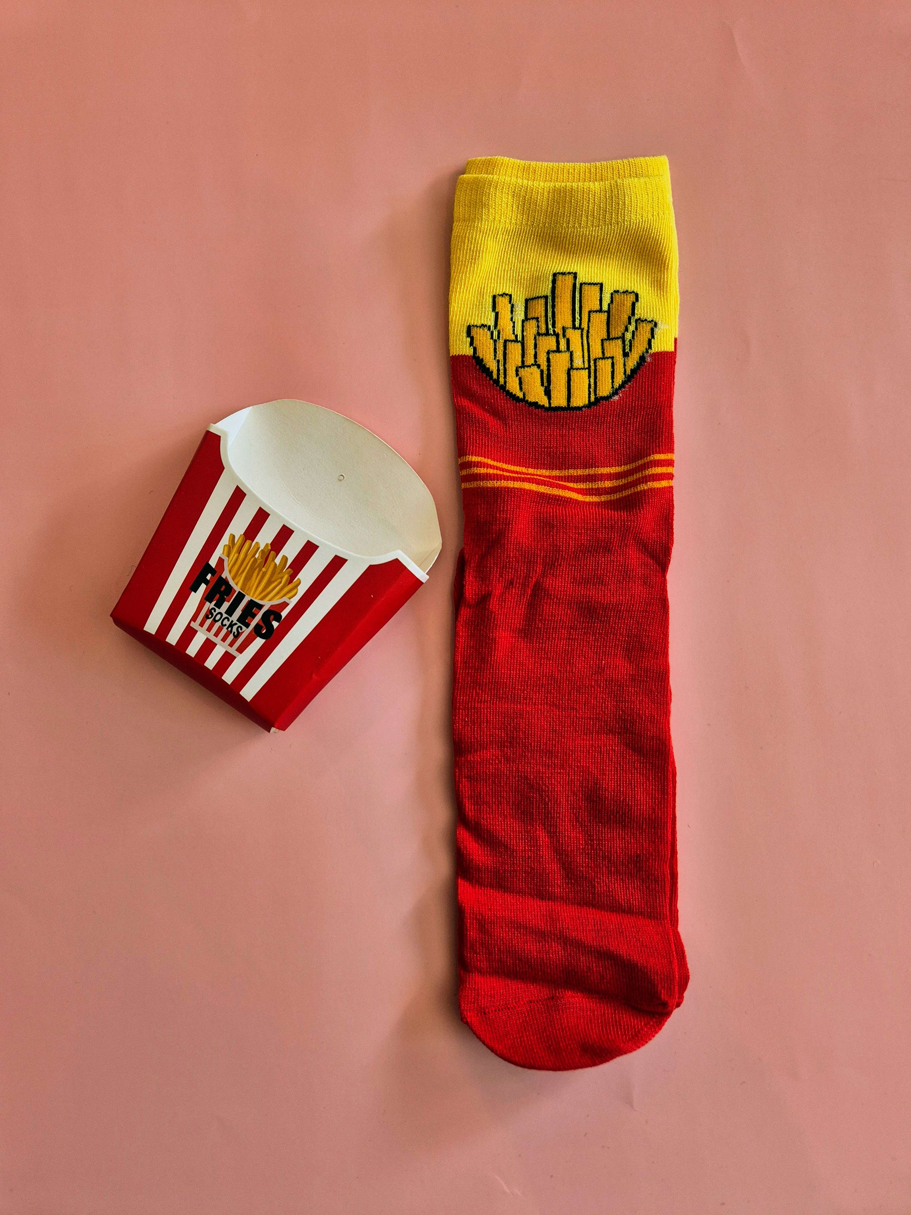 Le Fries Socks sono un’idea regalo originale e divertentissima: un paio di calzini colorati racchiusi nella loro iconica confezione a forma di box di patatine fritte.